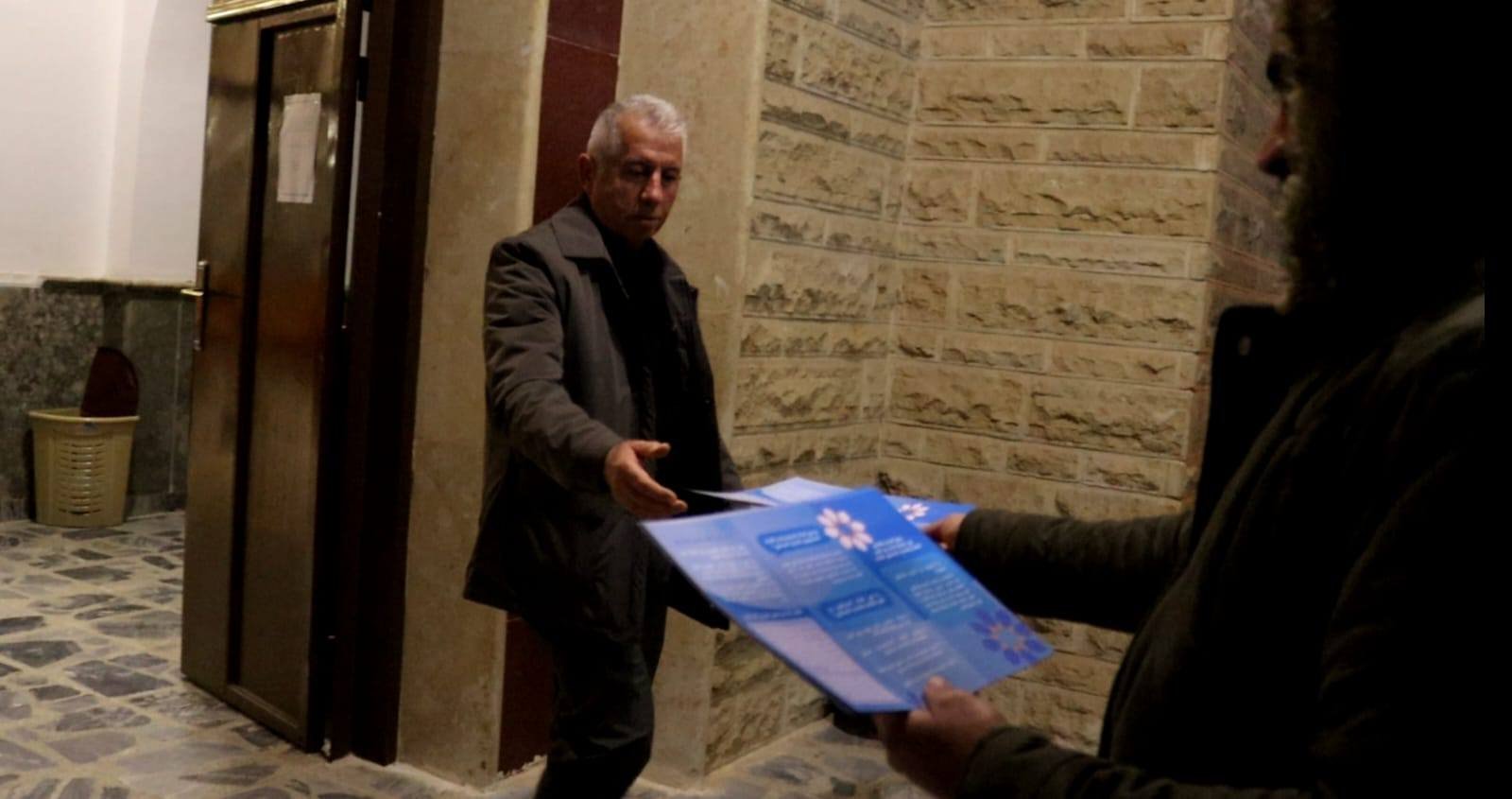 Activity 2: Awareness Campaign through Friday Sermons and Engagement of Religious Leaders: Recognizing the influential role of religious leaders in shaping public awareness, STEP collaborated with the Directorate of Endowments in Duhok to integrate awareness messages about social security into Friday sermons. Coordination meetings were held with several imams to provide them with simplified informational materials on the Social Security Law, emphasizing its alignment with principles of justice, dignity, workers’ rights, and social protection. Awareness leaflets were also distributed after prayers at mosque exits by volunteers. Additionally, a dedicated orientation session was organized for 12 religious leaders to enhance their understanding of the law and enable them to respond to citizens’ inquiries.