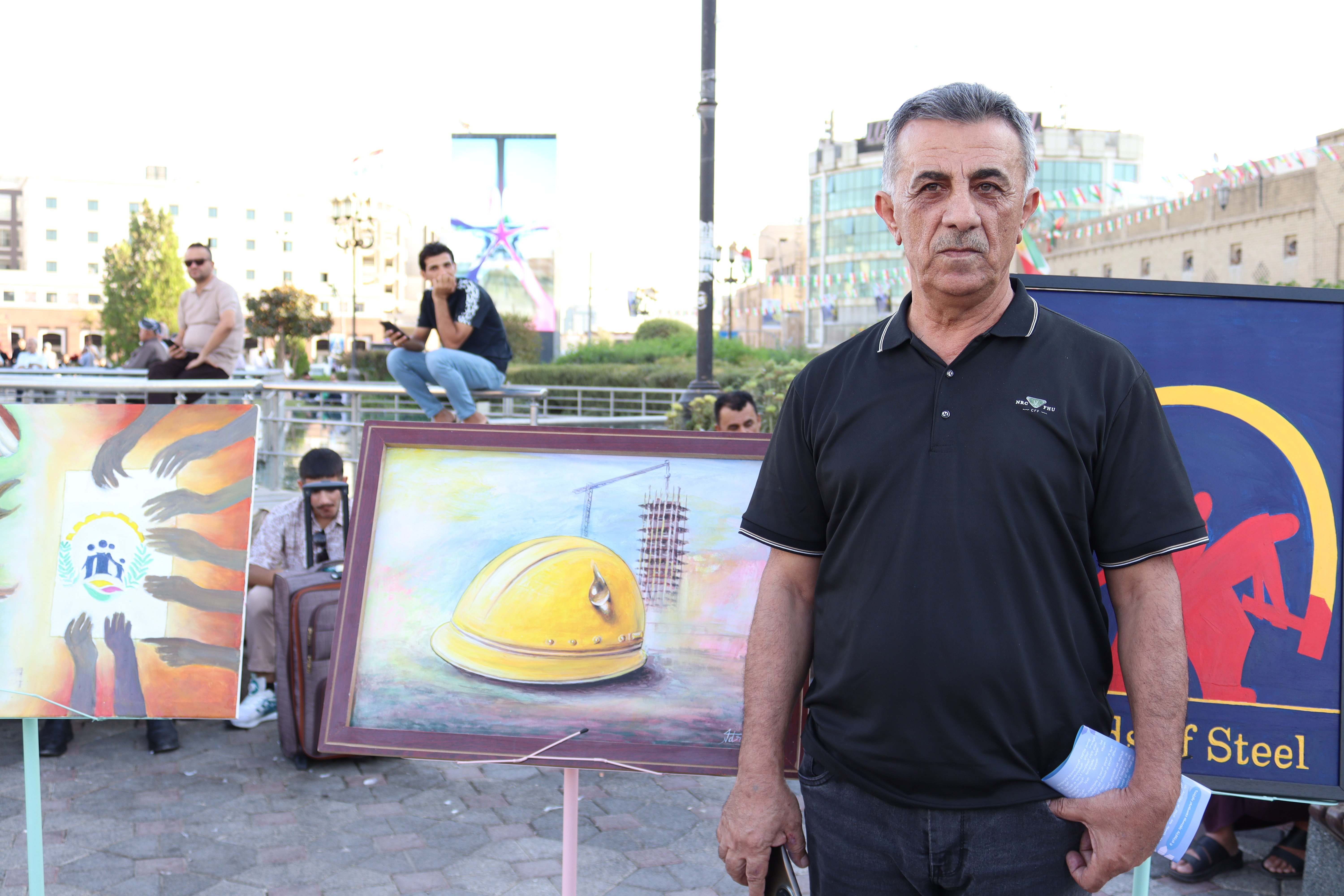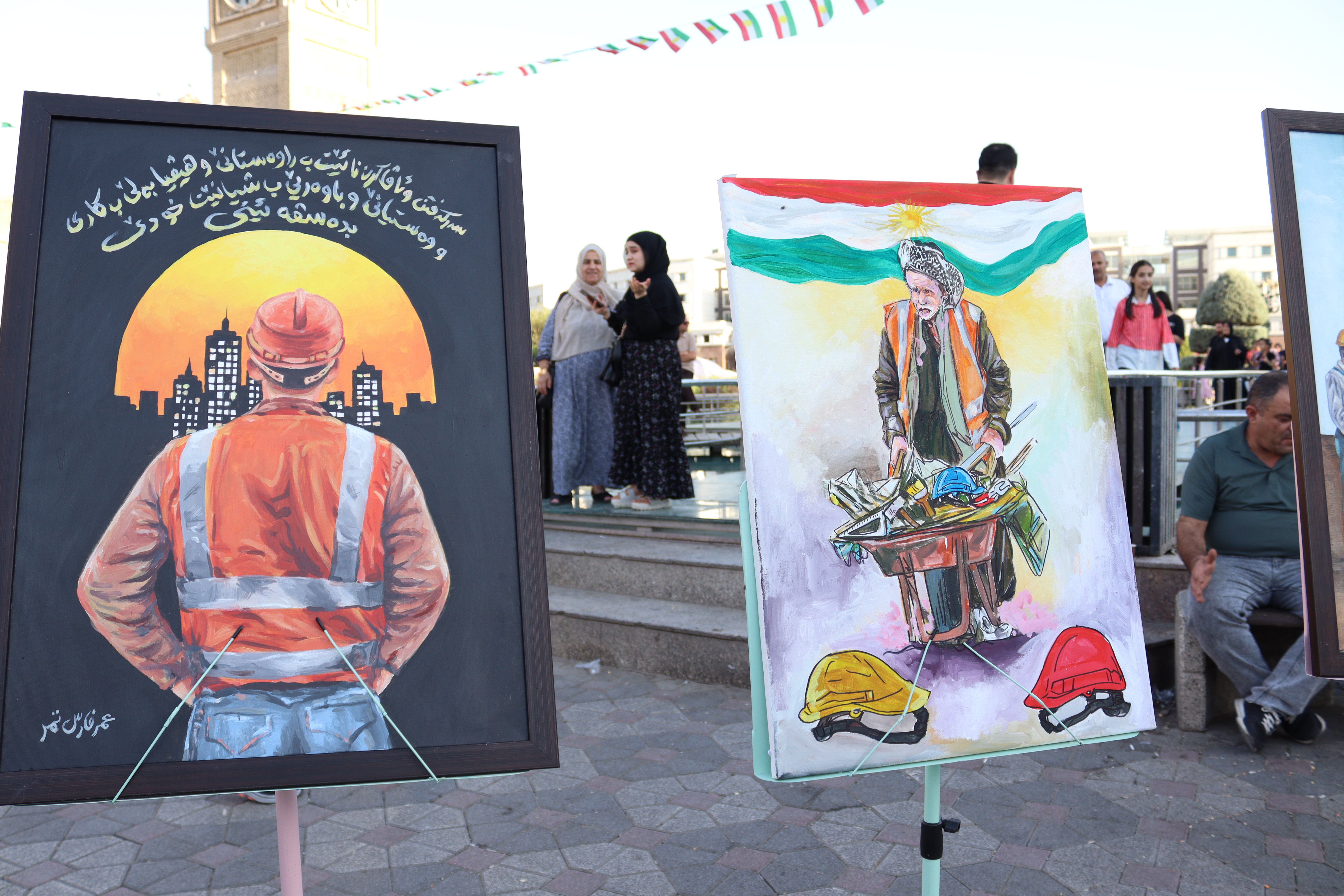 Activity 6: Art Competition – Bagi Shar Park, Erbil: Twenty artists participated in creating live paintings reflecting themes such as workers’ dignity, social protection, retirement security, and labor rights. An exhibition was held at Bagi Shar Park in Erbil city center. The activity also included a street theatre performance, distribution of awareness materials, and presentation of a success story of a retired, insured private sector worker.